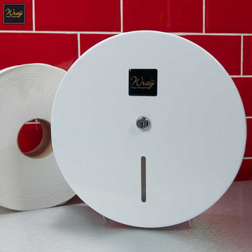 This white metal Jumbo Toilet Roll Dispenser is suitable for 400m plus jumbo toilet rolls....