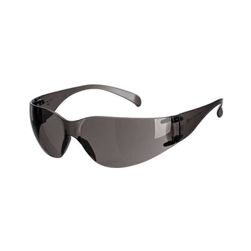 Stylish work glasses with a smoked wrap-around lens with side shield temple and rubber ends...