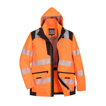 Keep yourself visible, comfortable, and protected with the Portwest PW3 Hi-Vis Breathable 5-in-1 Jacket PW367....