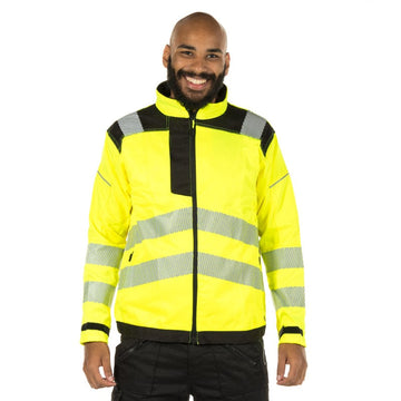Leo Workwear Hi Vis Brace Portmore Bomber Jacket providing strong visibility in a multitude of...