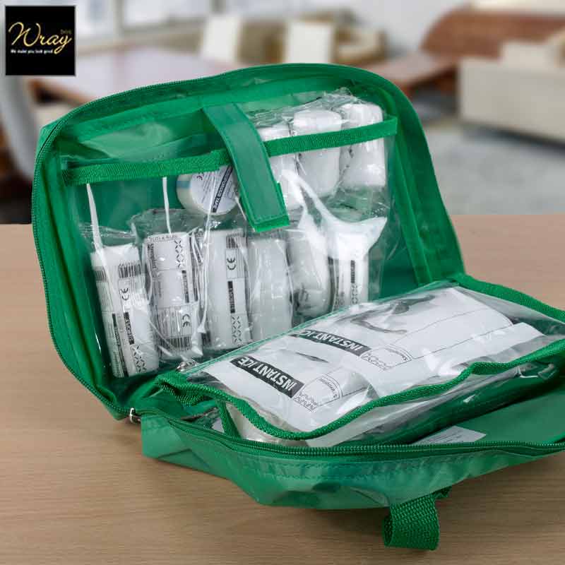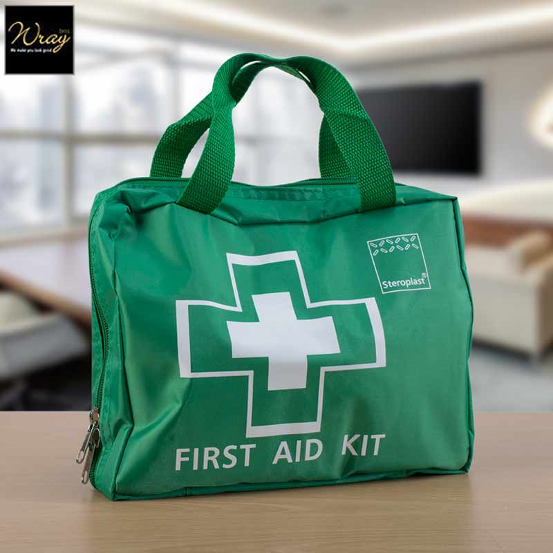 A well-stocked First Aid Kit in a handy, zipped nylon bag.