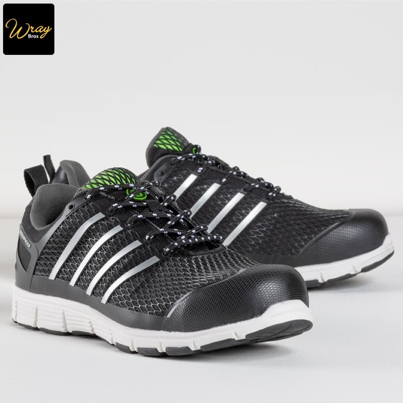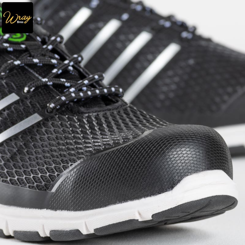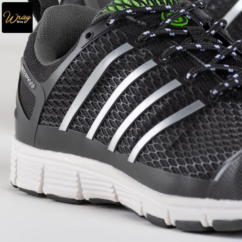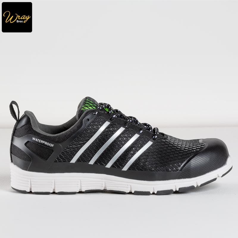 The waterproof mesh upper protects against rain and moisture, whilst the inner lining and polyurethane upper allow for breathability and comfort. The aluminium toe cap and composite midsole make this trainer very lightweight, but also gives protection against falling objects or heavy impact.