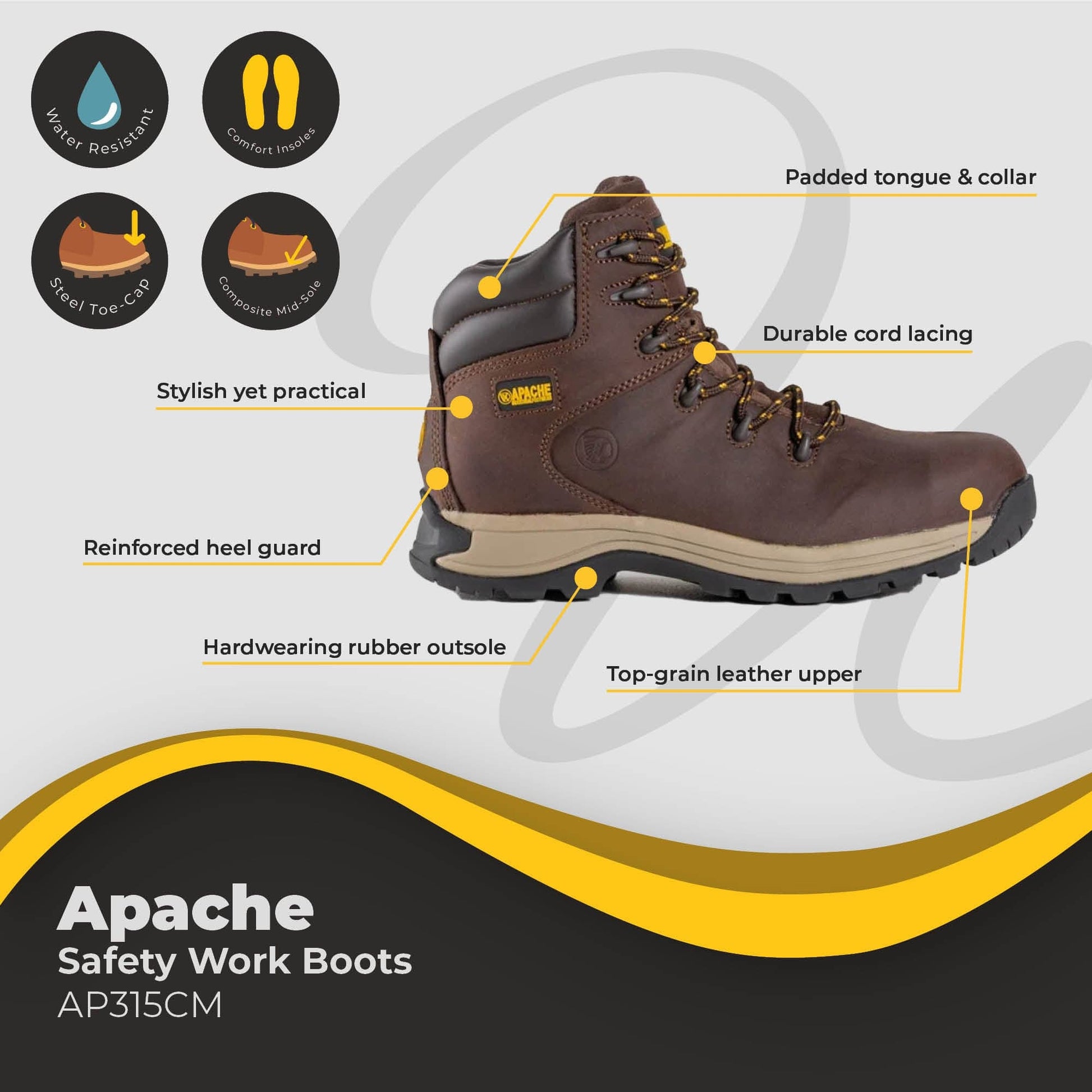 Apache Safety Work Boot AP315CM S3 SRA is a water resistant nubuck safety hiker.