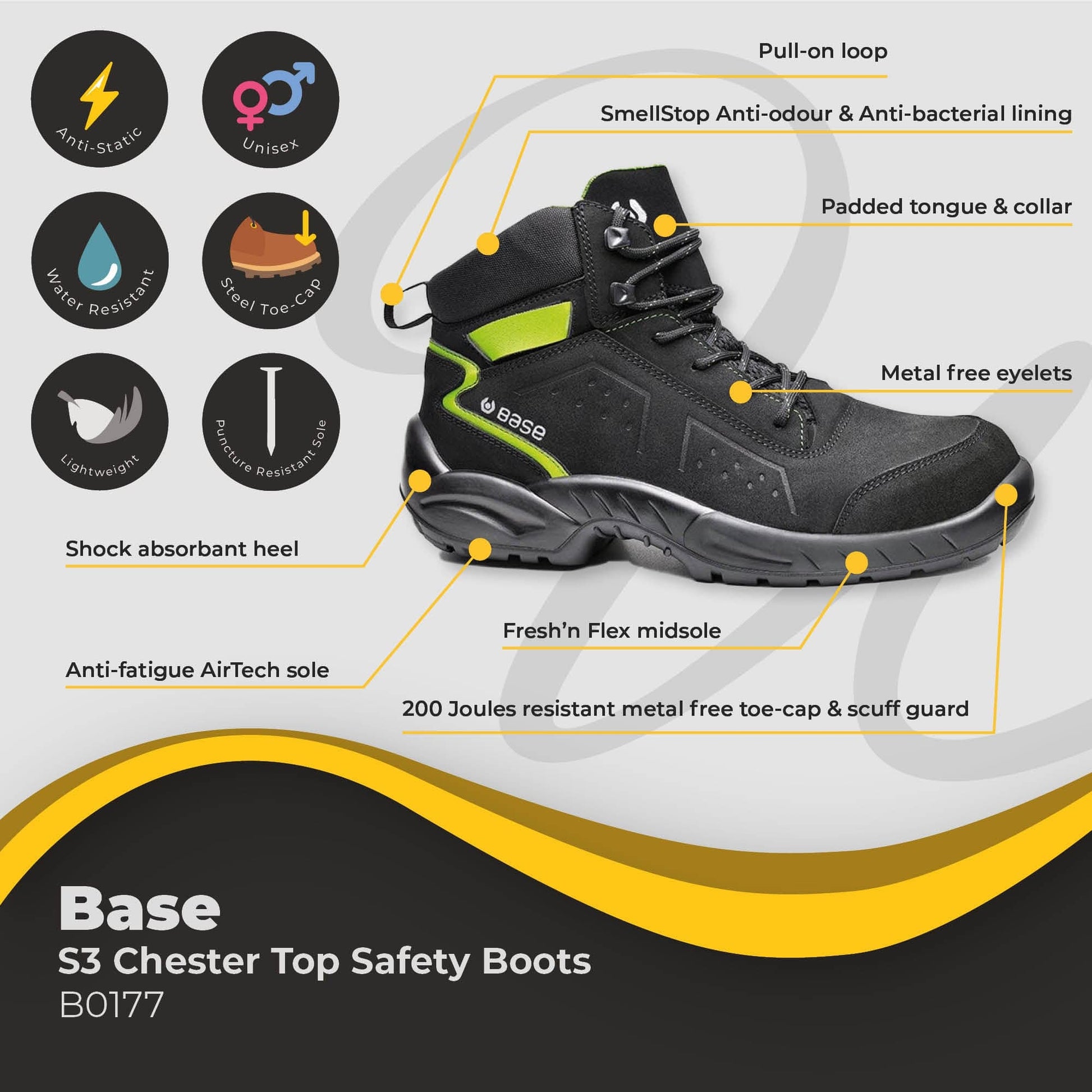 A great universal style in simple black, but with pops of green accents and thoughtfully placed stitching. A great representation of Base's quality, with SmellStop antiodor and antifatigue technology, meaning your feet will be both fresher and comfortable for longer.