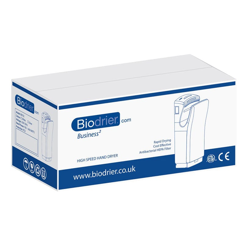 The Biodrier Business is based on a simple yet powerful idea, using the heat from its own motor to provide the warm air used to dry your hands. This is just one of the many features of this dryer which drastically saves energy when compared to a traditional hand dryer. This 10 second hand dryer is powered by a high-speed brushless motor. 850 watt.