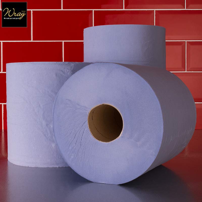 Blue centrefeed rolls are suitable for busy washrooms, catering and healthcare environments