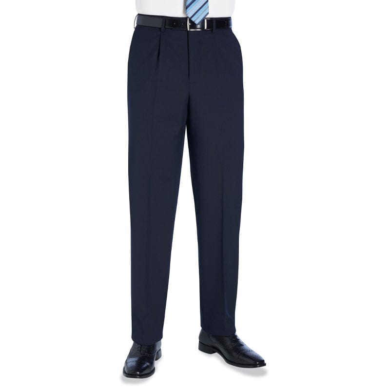 Brook Taverner Langham Single Pleat Trouser in Navy is a classic fit suitable for all formal settings.