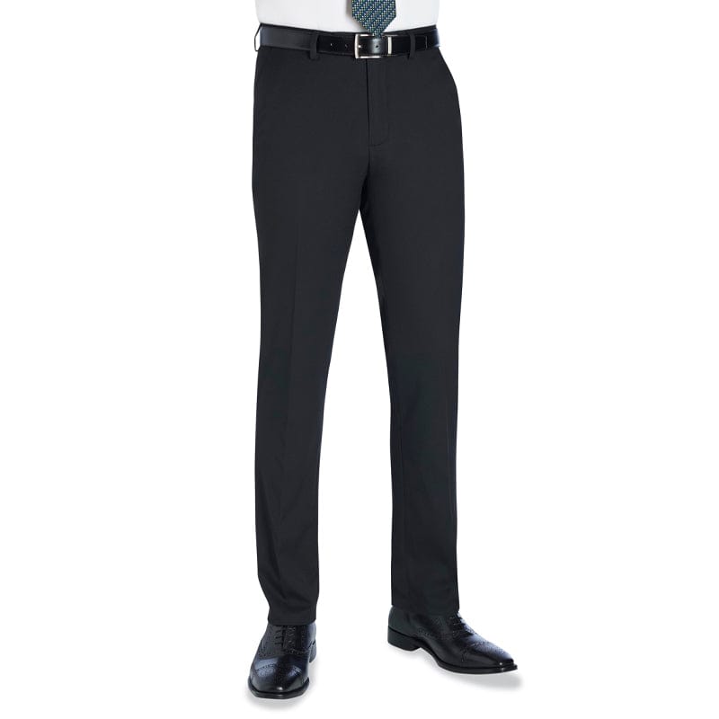 The slim fit design is more fitted look, a contemporary twist on an everyday office wear essential. With a traditional flat front and half hem these trousers keep you looking smart, and a fashionable choice for office work, corporate, hospitality and other formal settings.