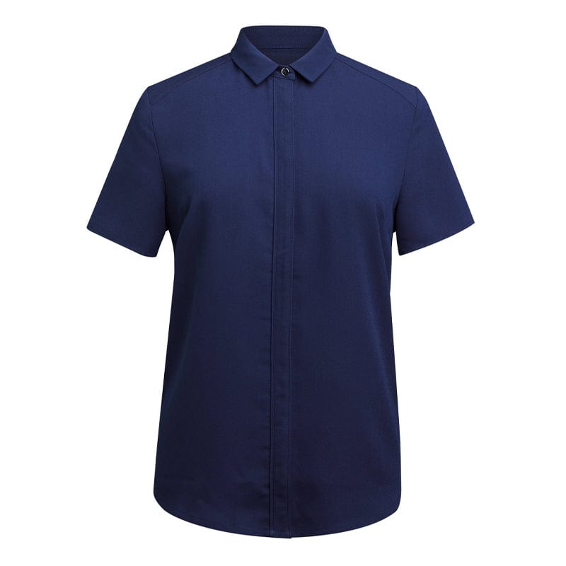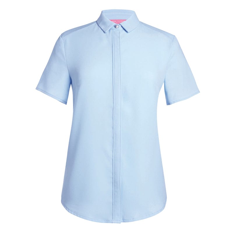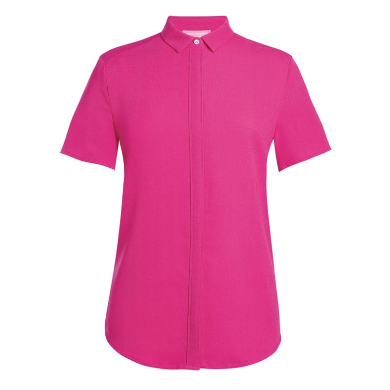 This women's short sleeve blouse by Brook Taverner with its easy care properties, is a great option to any front of house uniform. Featuring a concealed button up fastening for a more elevated and sleek style.