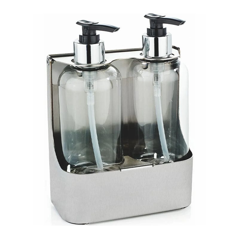 Brushed Stainless Steel Twin Soap Bottle Holder