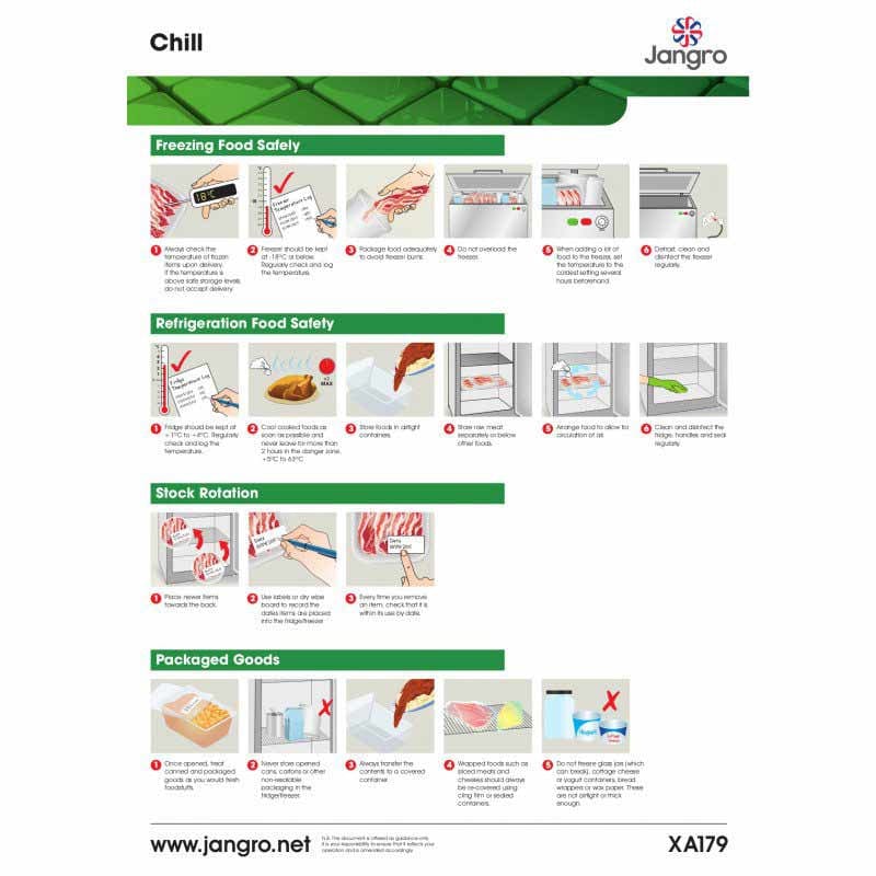 Developed by Jangro, the Food Chill Guidance wall chart provides advice on hygiene standards for a commercial workplace.