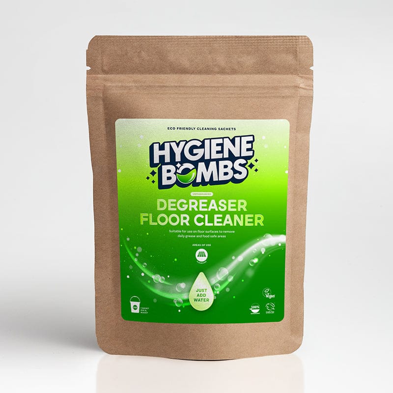 Made from a powerful degreaser formula designed to clean and degrease all washable surfaces in a catering and food-focused area. With a strong grease-cutting component, these cleaning sachets are unfragranced and leave surfaces shining bright without any smears. Hygiene Bombs are vegan-friendly, sustainable, cruelty-free and 100% biodegradable.
