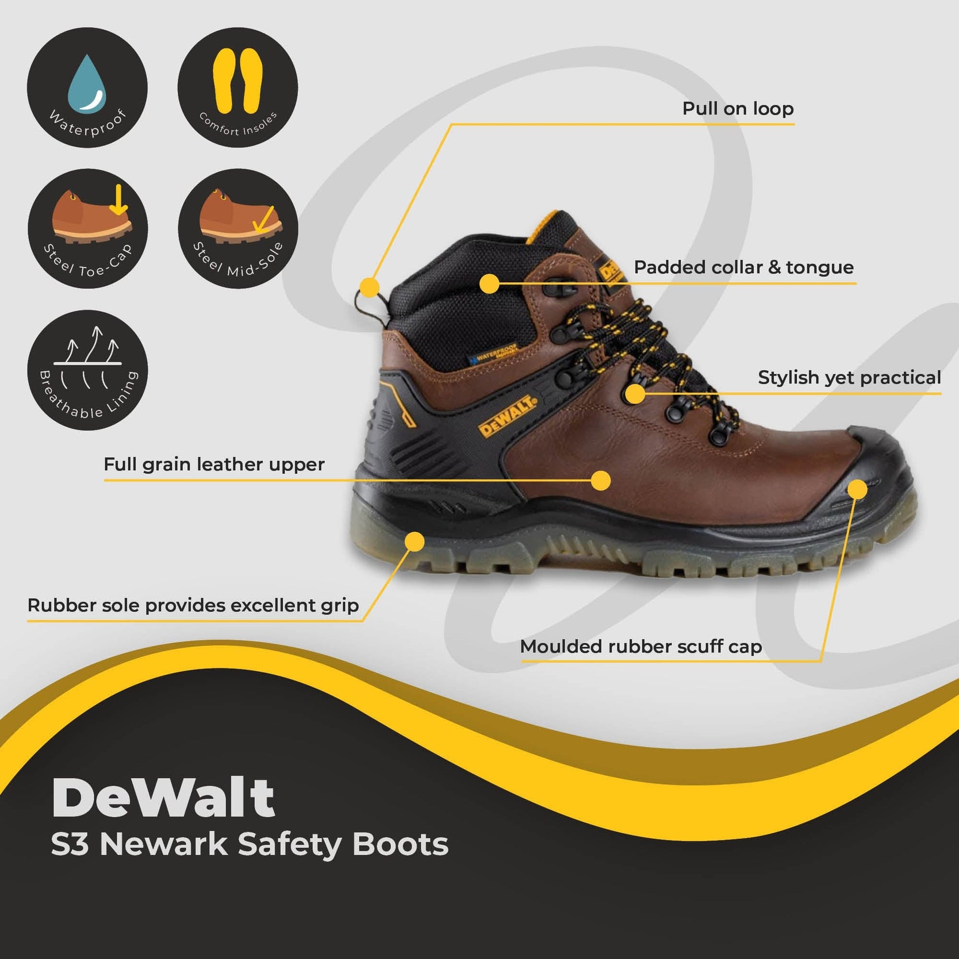 Here are the standout features that make DeWalt Newark Waterproof Safety Boots a popular choice: