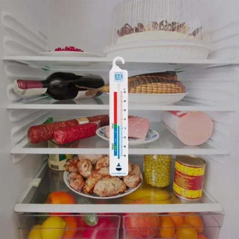 The thermometer measures 150 x 24mm. Free-standing or hang from a shelf.