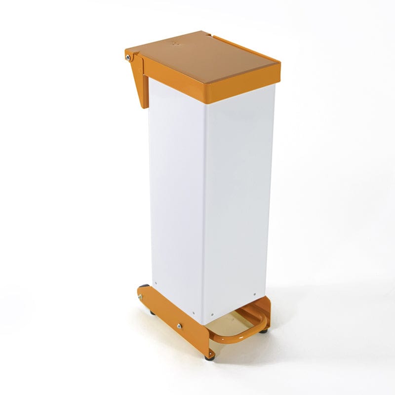 With a hands free frame and foot pedal operation, antibacterial coating to minimise the spread of infection on black, orange and white lids makes the corrosion resistant and fire retardant pedal bin ideal for clinical settings and toilet areas.
