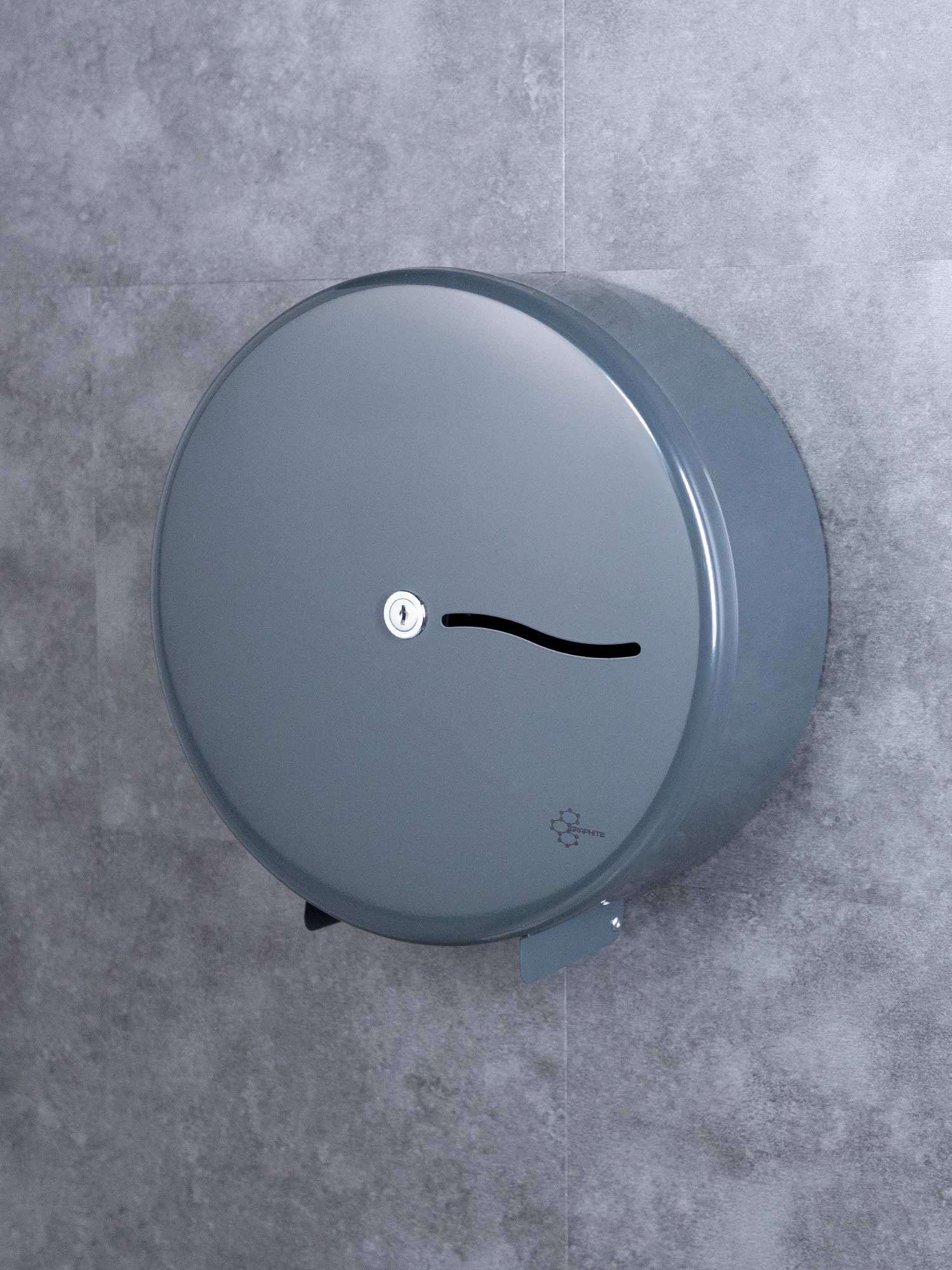 The Graphite 12-inch Jumbo Dispenser also features a full back plate, a T-Bar lock and 118 key system for secure storage, and is made with a grey metal powder coat finish for durability. Maximize efficiency and convenience with this great addition to any high-traffic area.