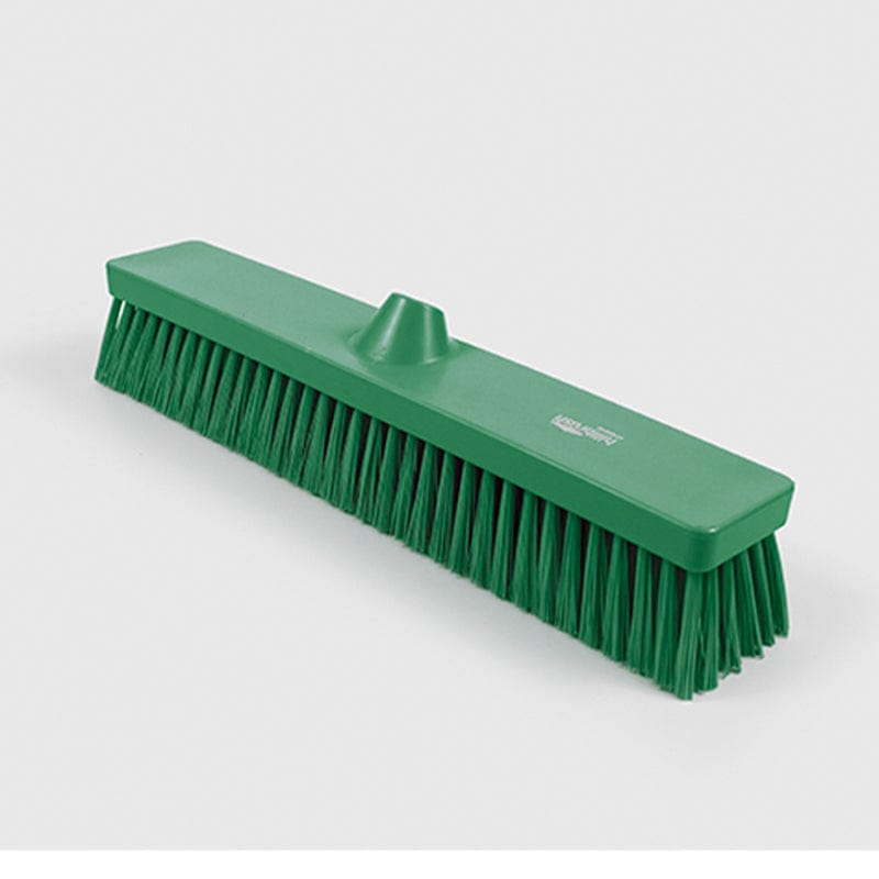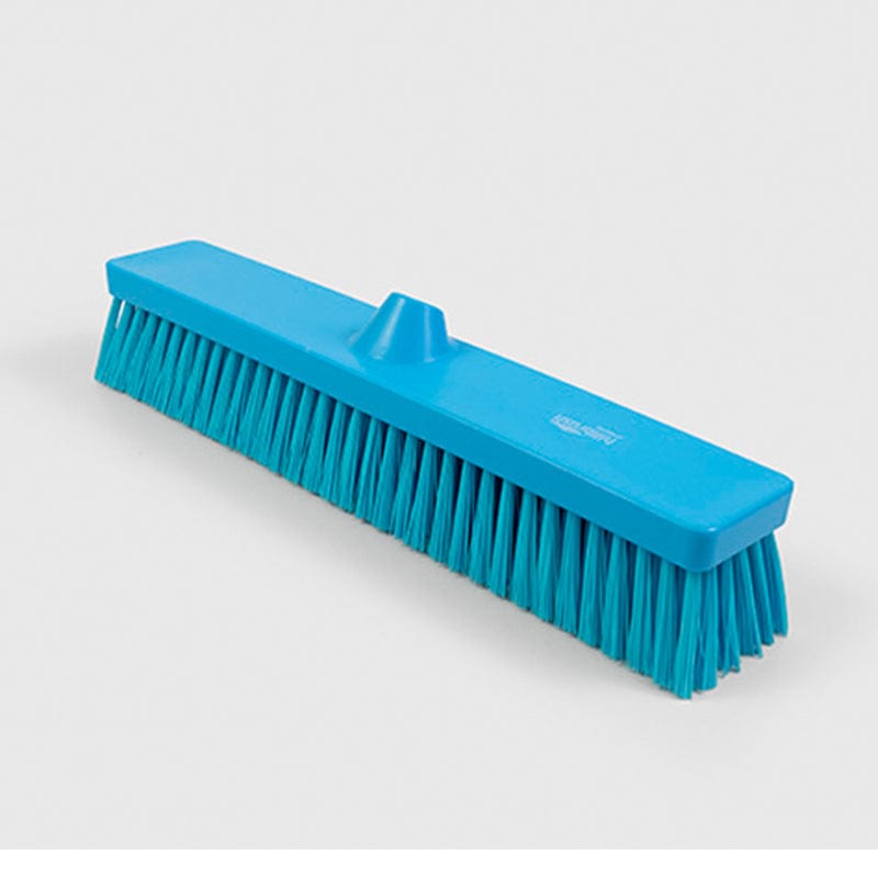 A stiff flat sweeping broom ideal for cleaning stubborn particles and heavy duty work in small areas.