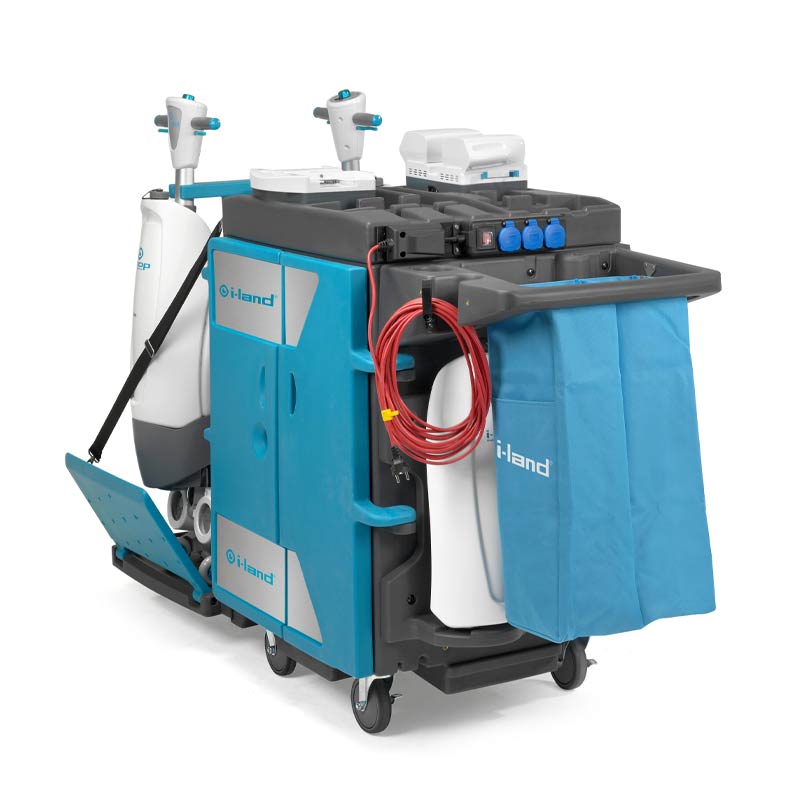 With the ability to hold your i-mop, cleaning products and charge your i-power batteries, the i-land XXL is a great mobile solution for cleaning operatives.