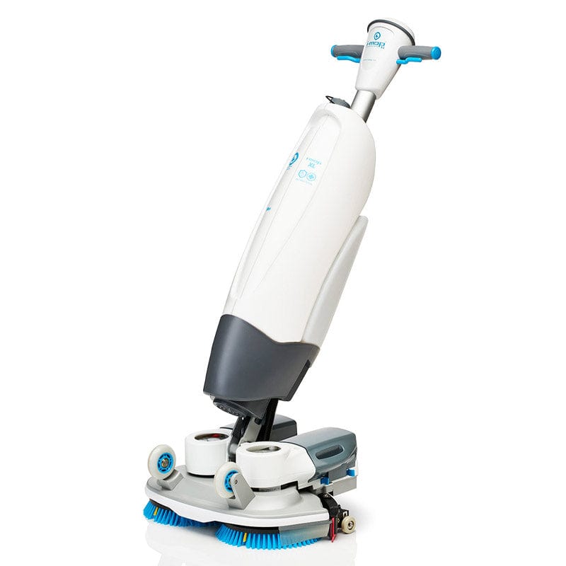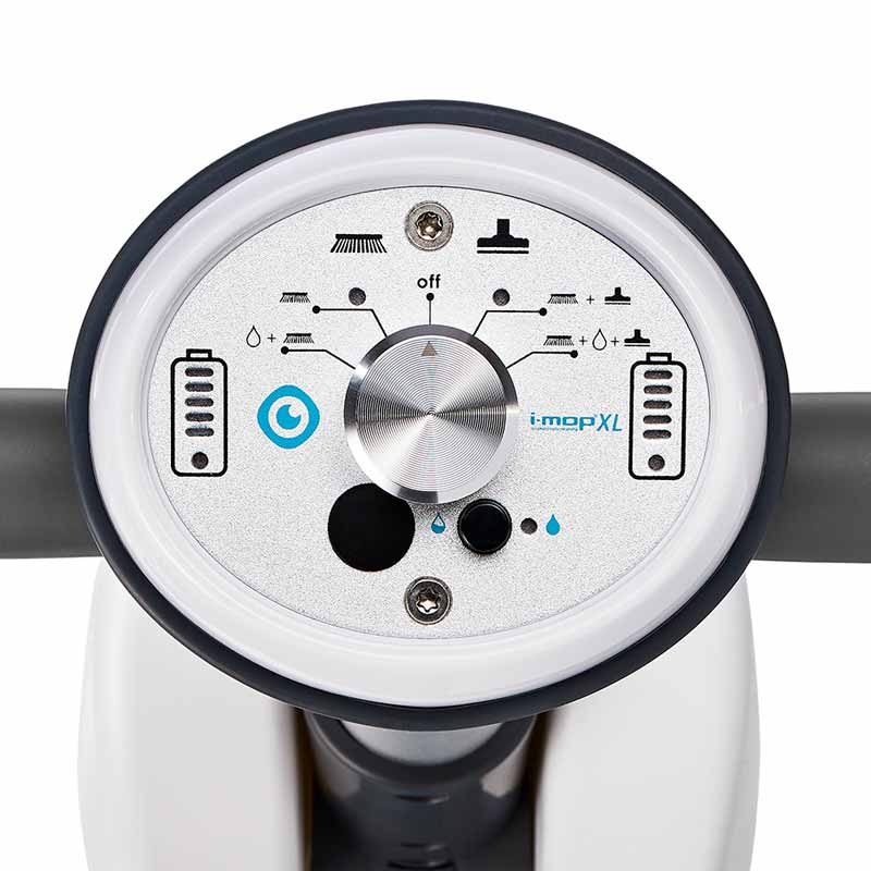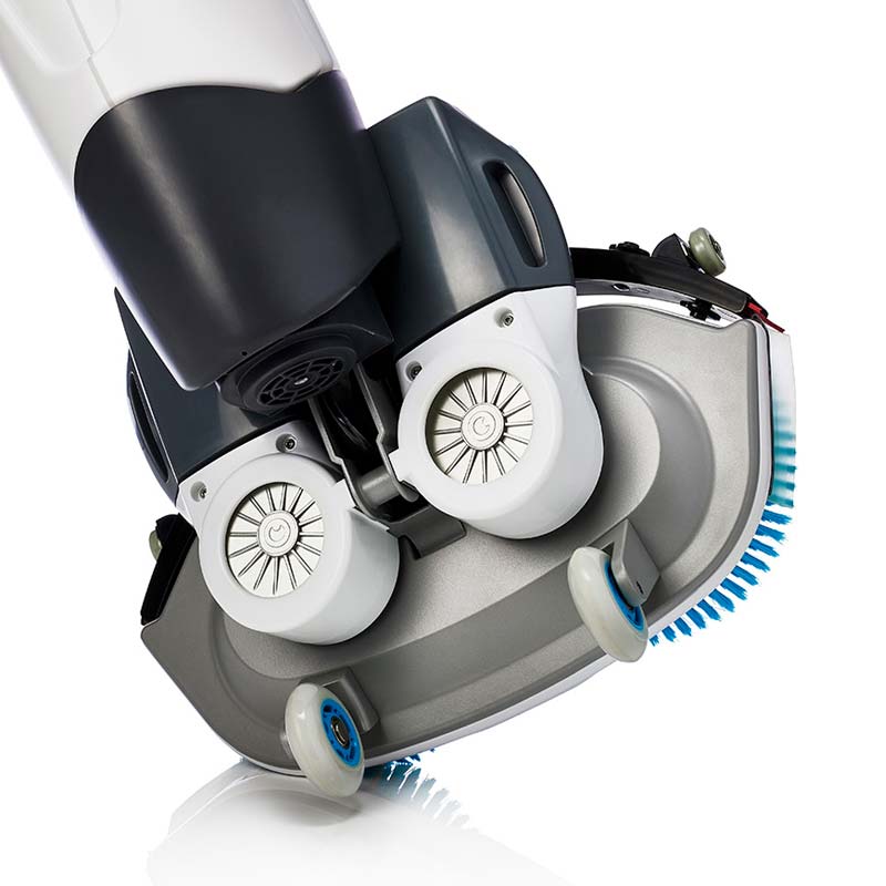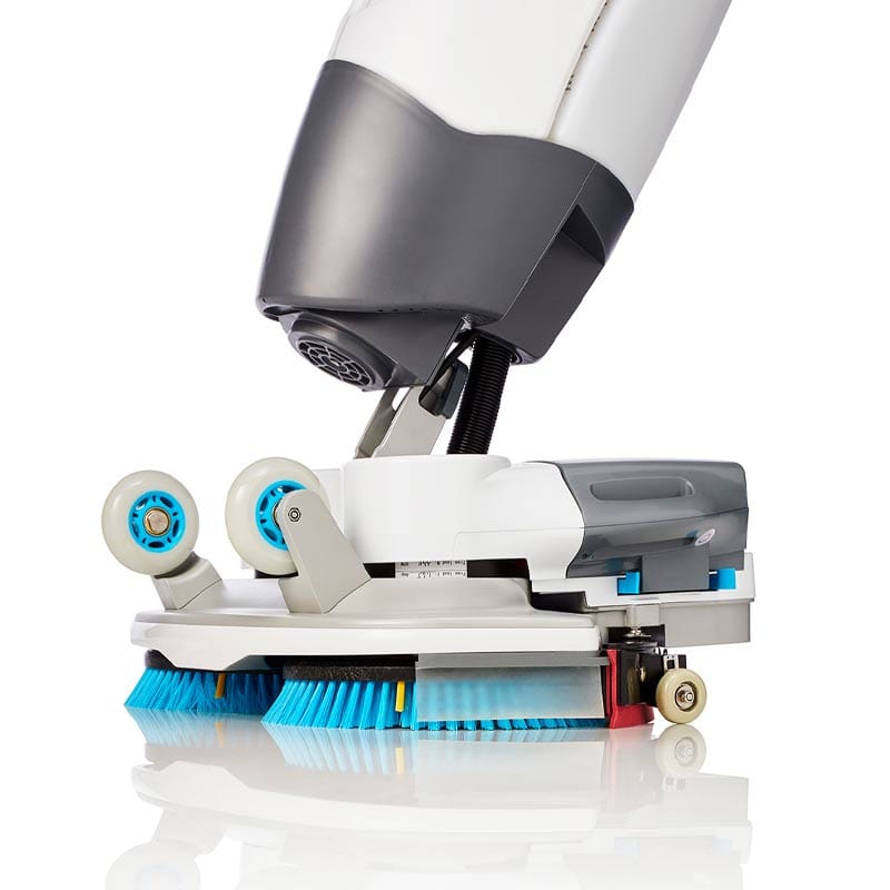 i-mop can clean around people without leaving floors wet, giving the operator total visibility and control in occupied spaces. You can clean underneath tables, serving areas, washroom sinks. Turn 360º on the spot. Clean 10 times faster than with a manual mop while leaving the floor cleaner. The two counter rotating brushes provide smooth and effortless operation so the i-mop may be easily controlled by the machine even with one hand.
