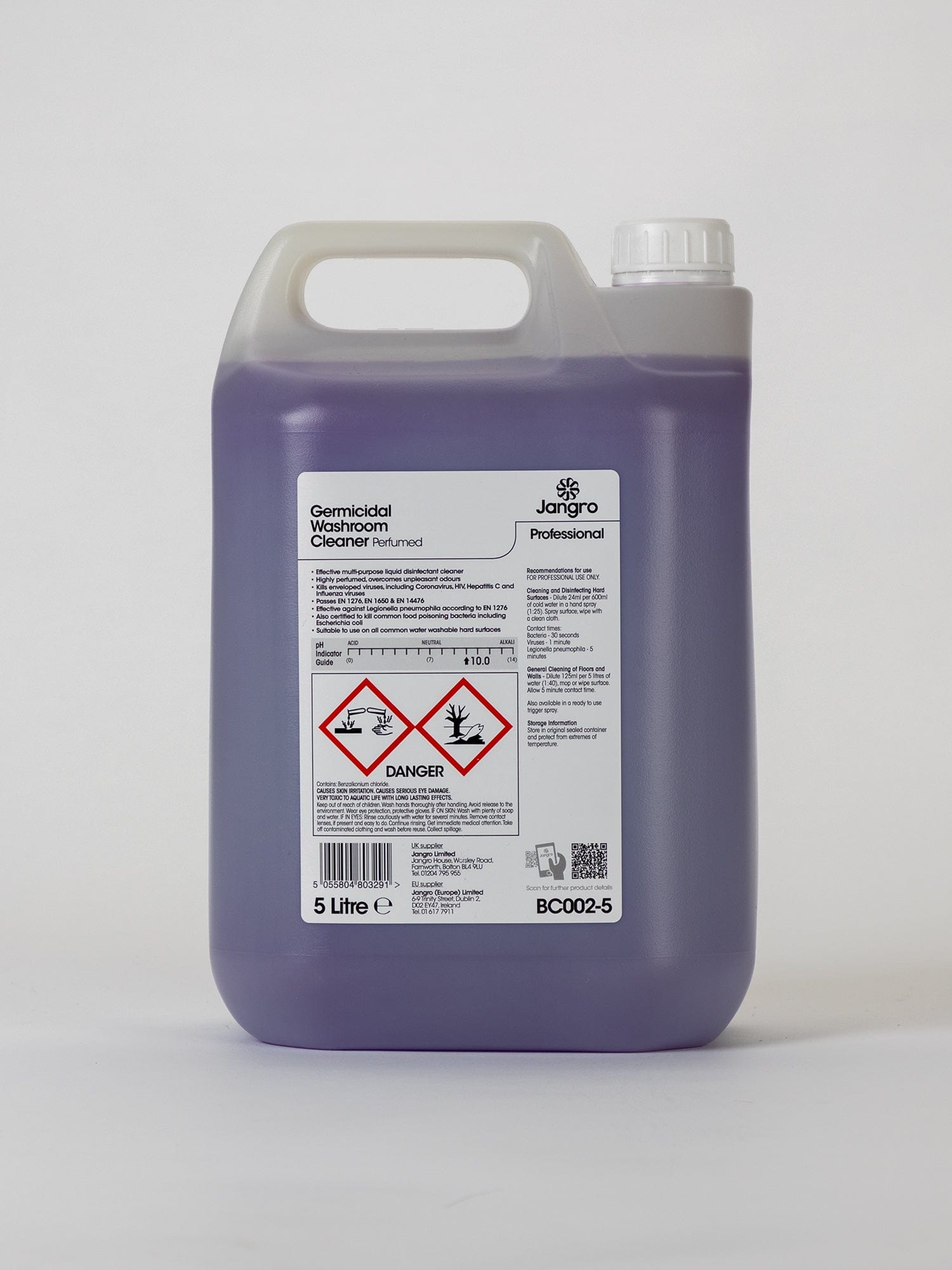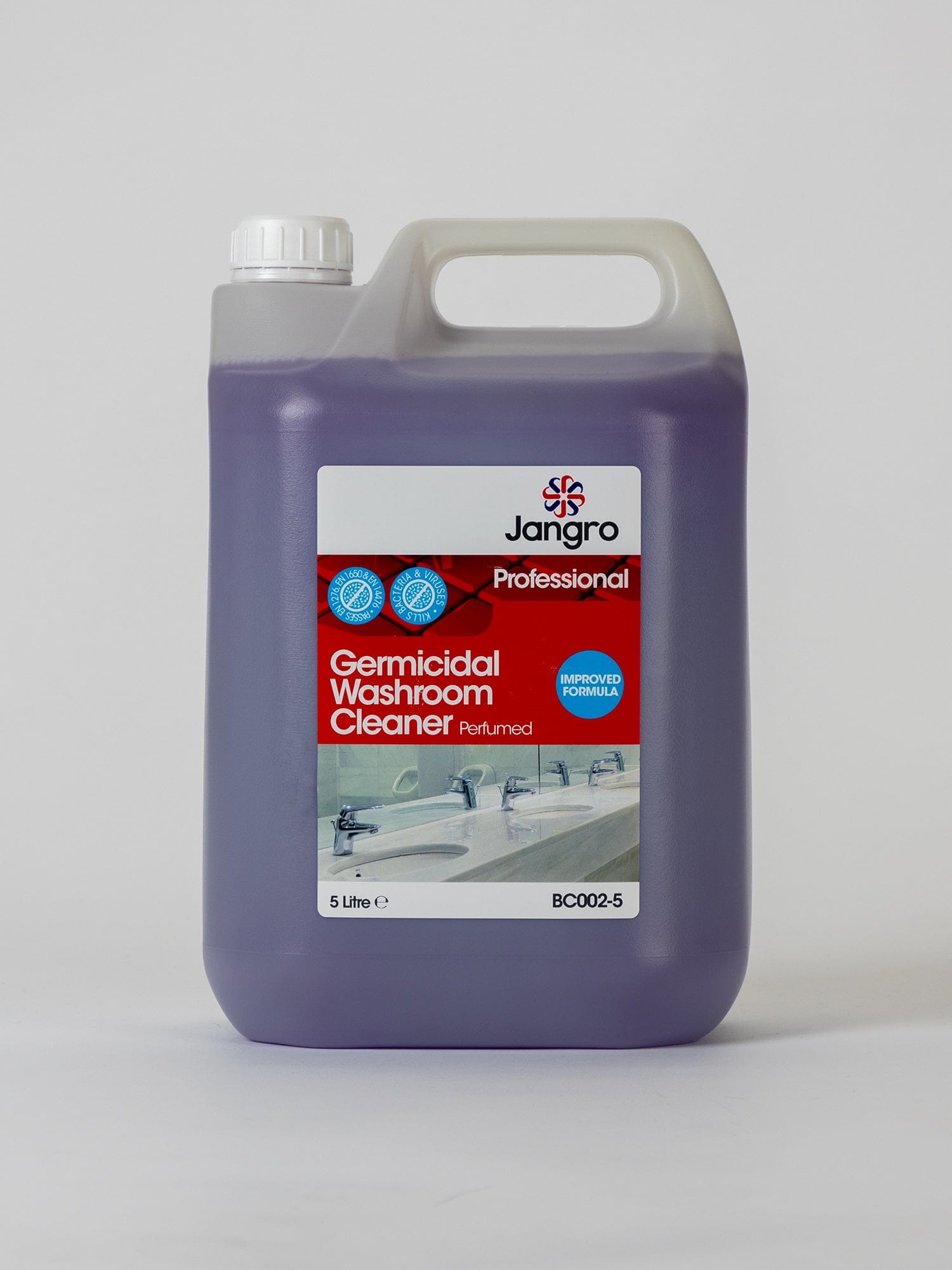 Jangro Germicidal Washroom Cleaner leaves washrooms refreshingly clean and hygienic. As it is pH neutral washroom cleaning with the Germicidal Cleaner makes it suitable for use on a variety of hard surfaces, including porcelain, stainless steel, plastics, chrome, ceramics, enamelled and painted surfaces as well as marble.