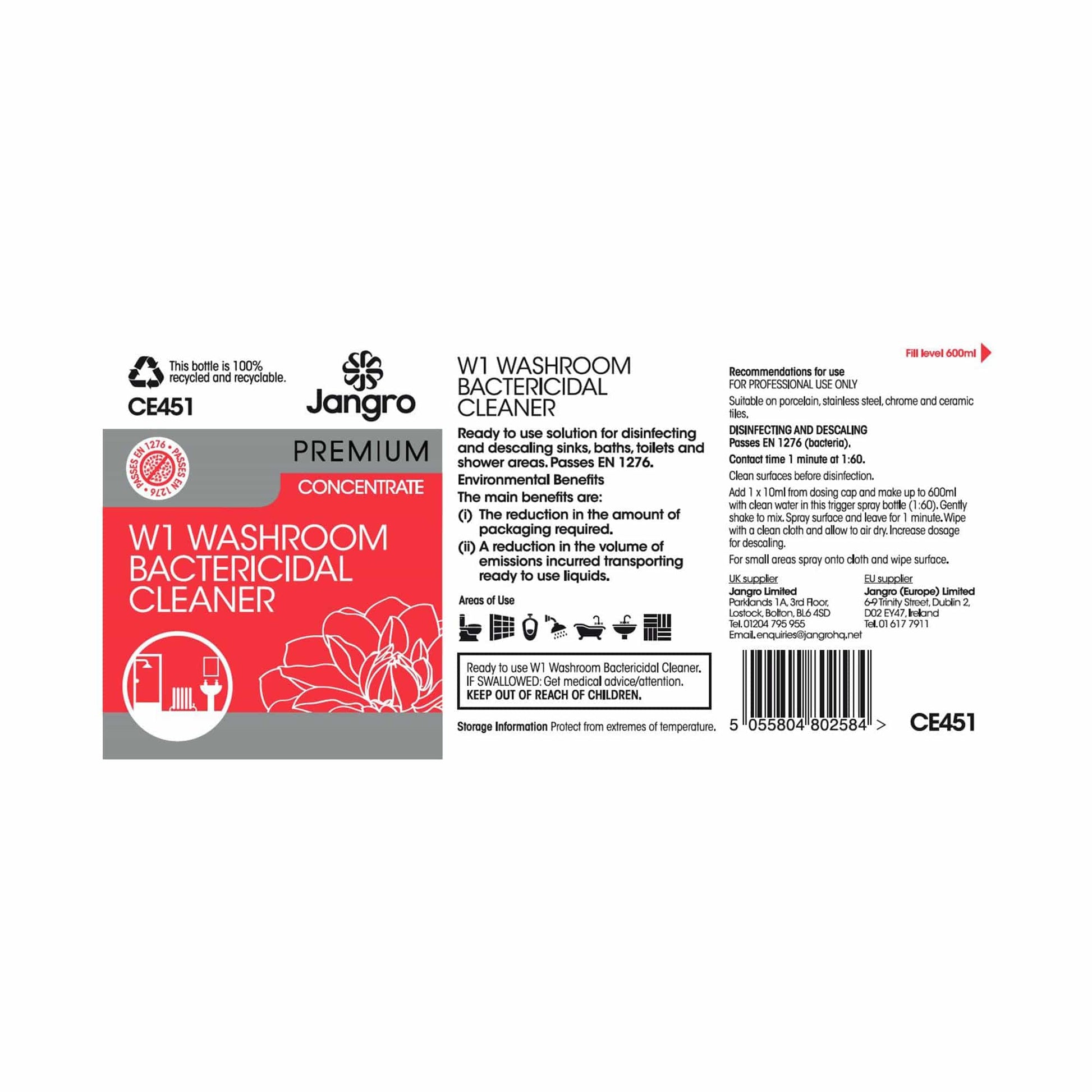 Jangro Premium Washroom Bactericidal Cleaner W1 Refill Bottle