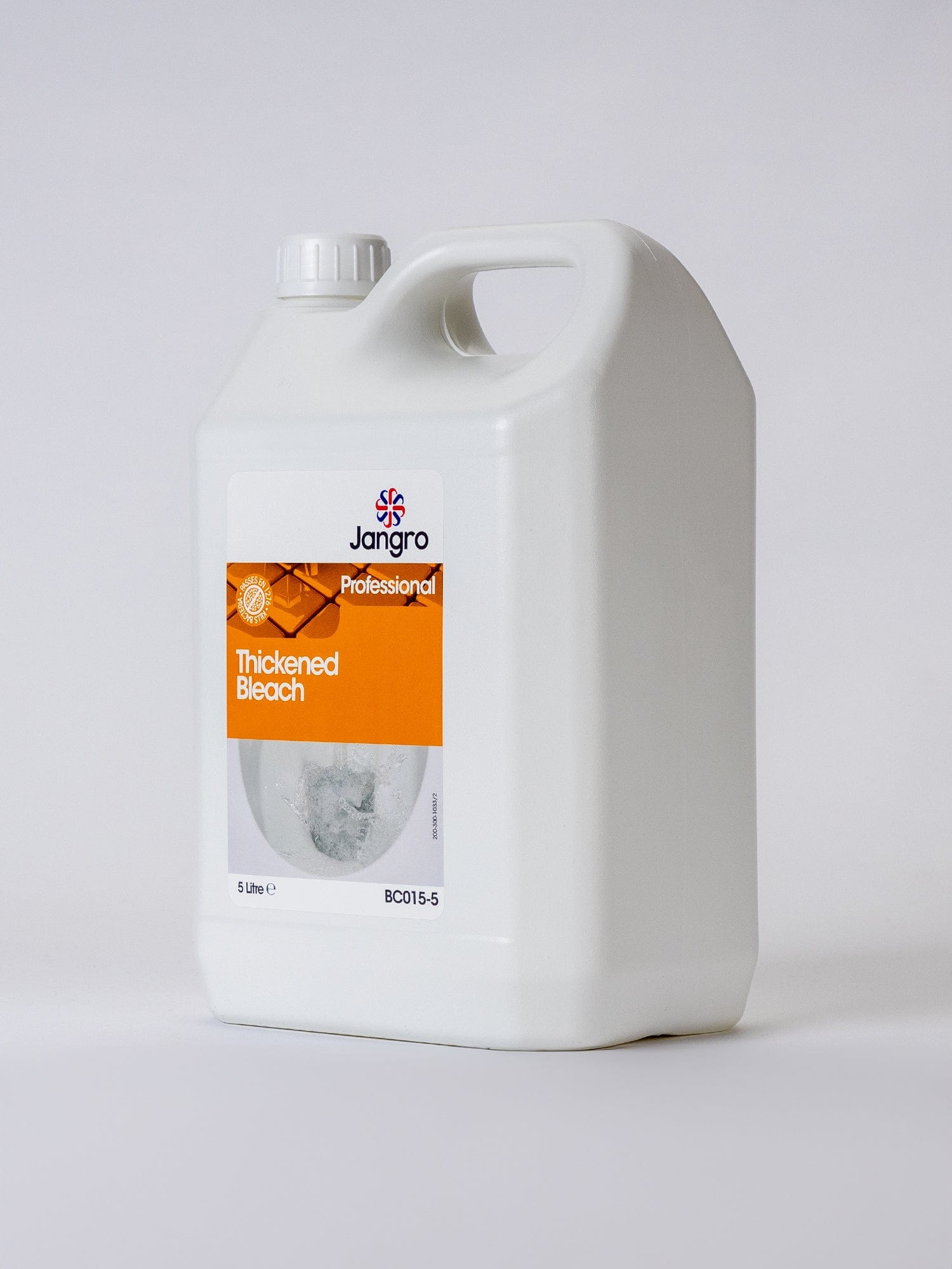 Specially formulated to give greater clinging power. The Jangro bleach has been specially formulated at 4.7% available chlorine to give total protection against all known germs and an improved concentrated thickness to give greater clinging power where it matters most.