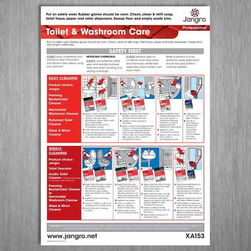 Developed by Jangro the Toilet & Washroom Chart is designed to help cleaning operatives when cleaning the washroom.