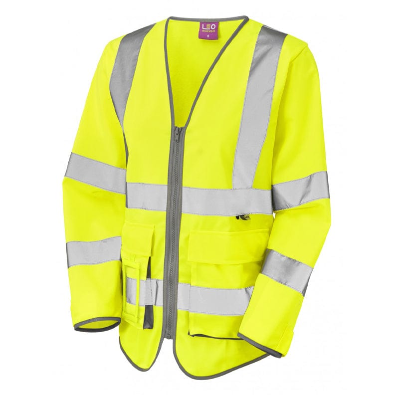 Leo Workwear Women's Hi-Vis Waistcoat with long sleeves and easy zip access.