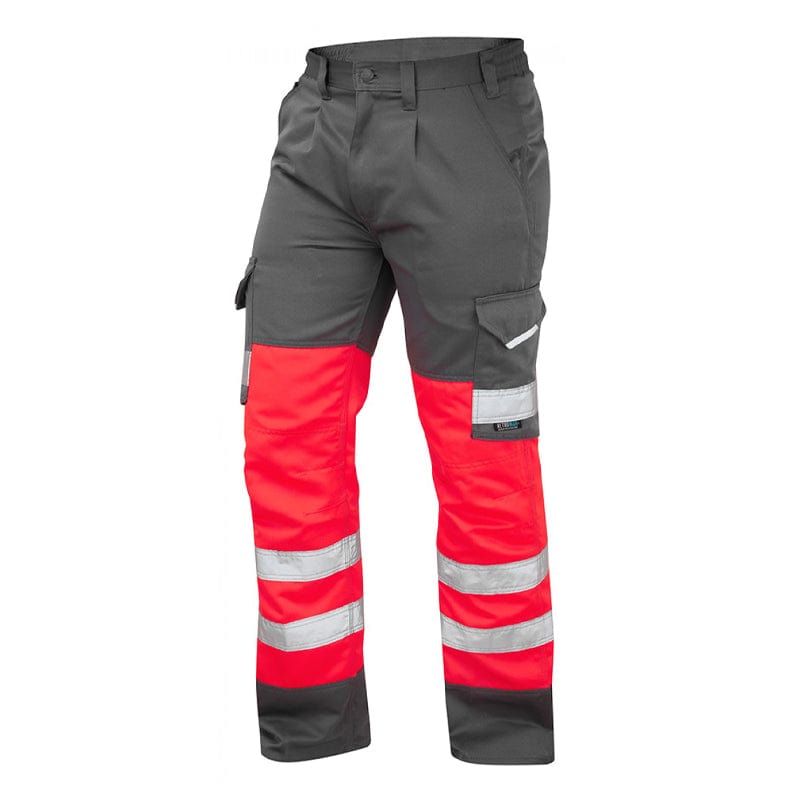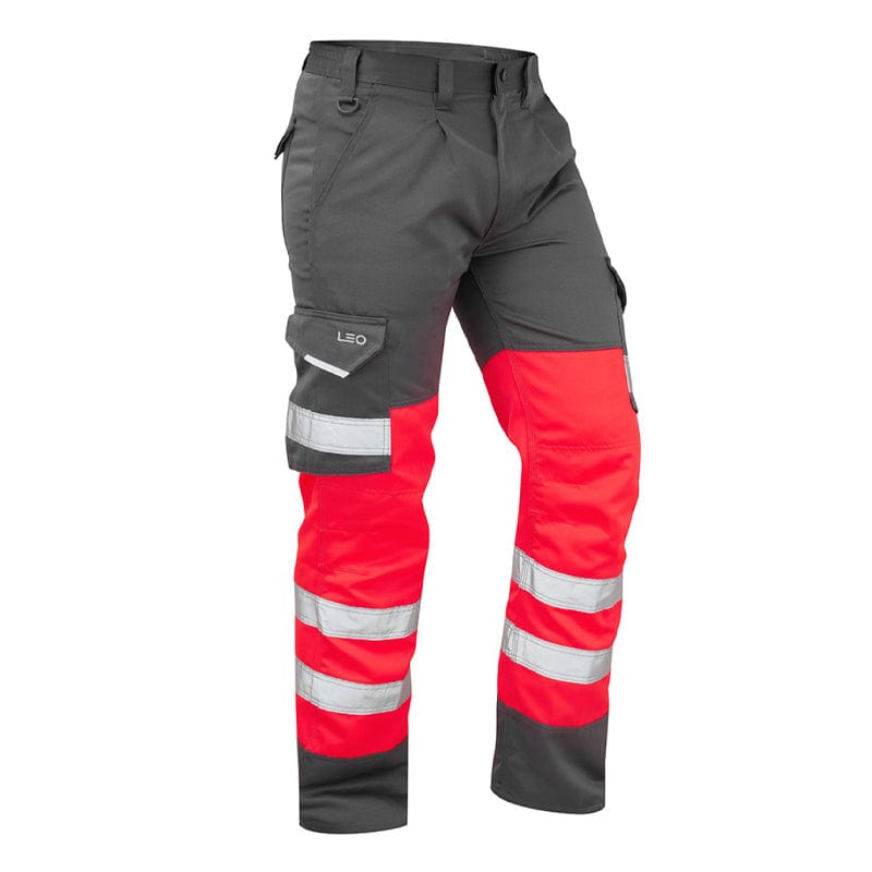 Leo Workwear Bideford Cargo Red/Grey Hi-Vis Trousers