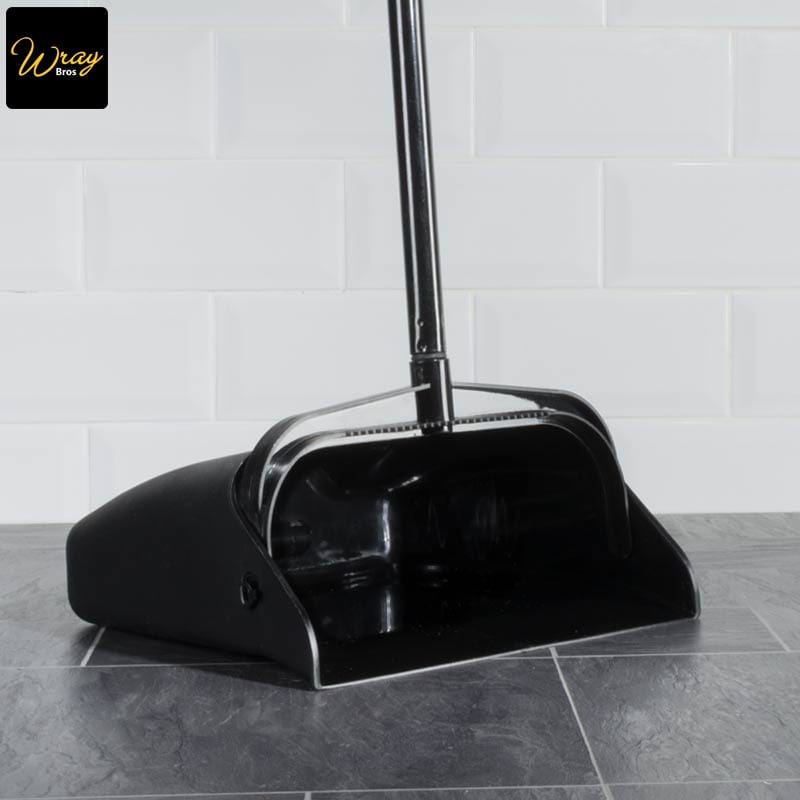 The rugged plastic model swings upright to hold rubbish or snap locks into position for easy use. The long handles help reduce stooping and subsequent backache.
