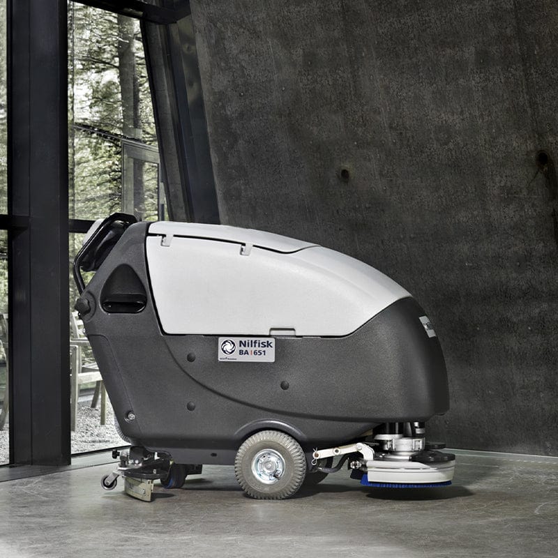Nilfisk Battery Scrubber Dryer BA651 is walk-behind floor scrubber to boost your productivity in large area cleaning