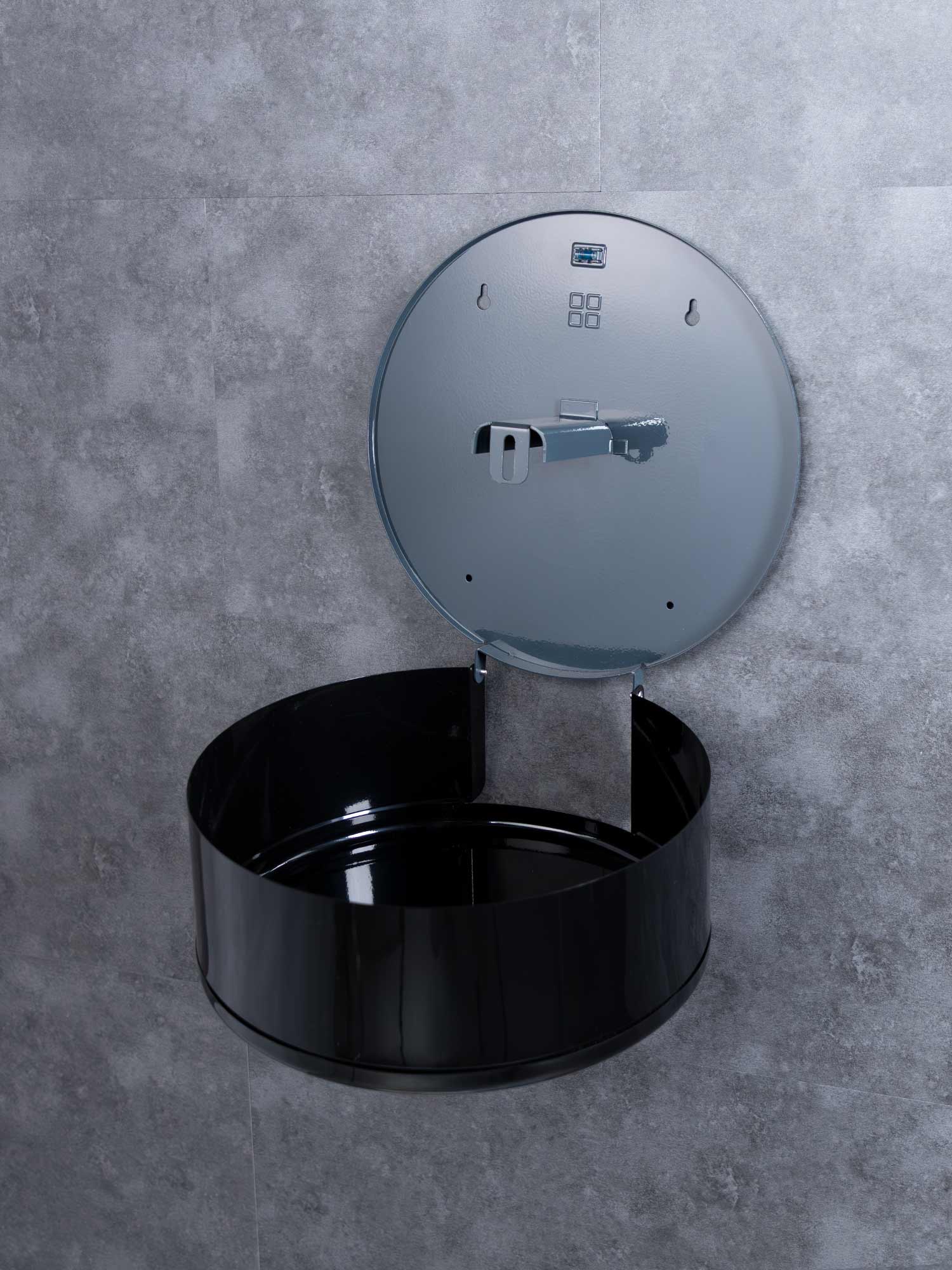Equipped with a key lock and hinged design for easy replacement of the roll, the dispenser can hold up to a 320mm roll and includes a level indicator for convenient monitoring. The dispenser can accommodate 2¼-inch or 3-inch rolls of toilet paper.