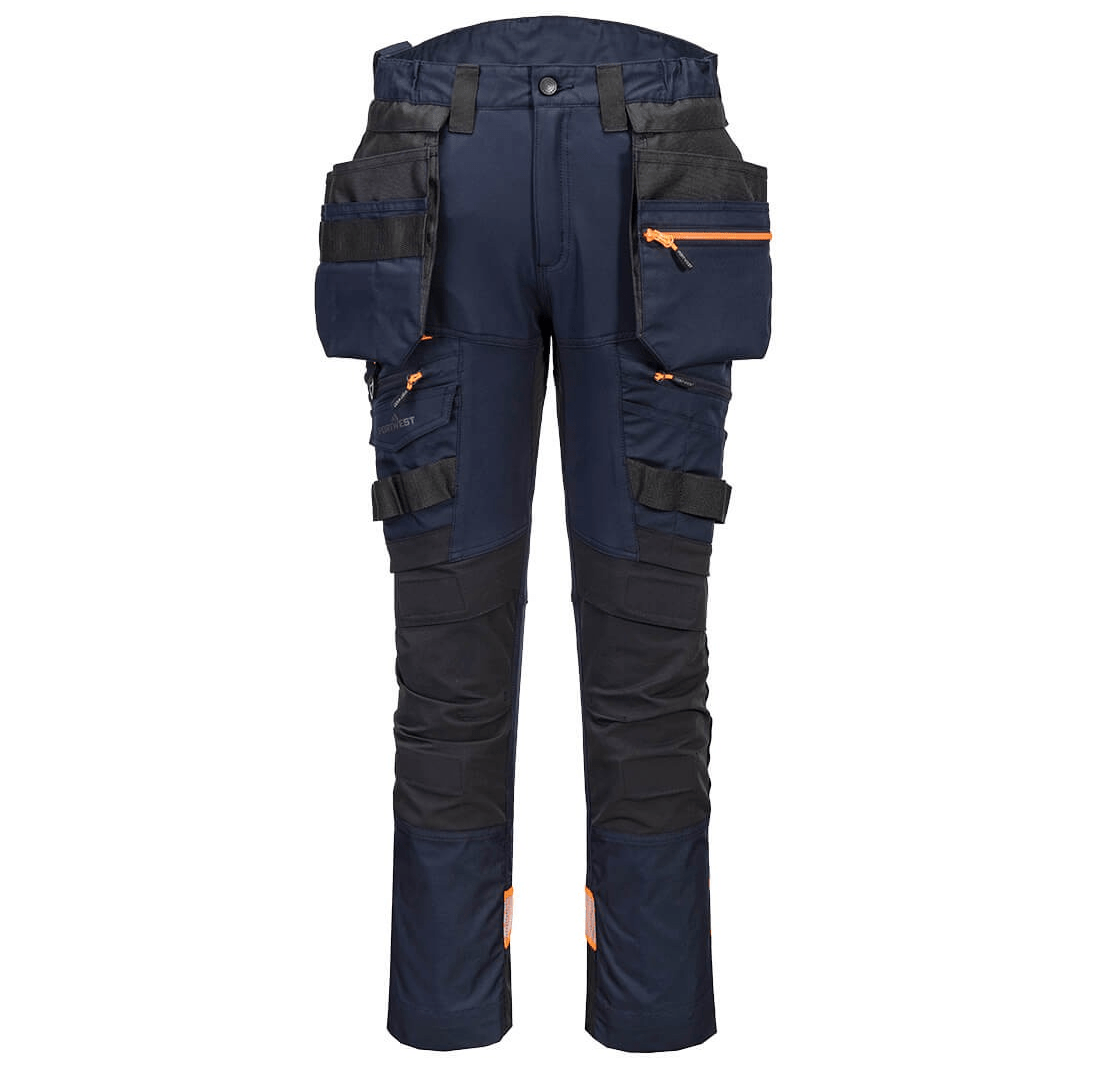 The **DX4 Detachable Holster Pocket Trousers** feature 4-way stretch fabric, ripstop durability, zip-off holster pockets, multiple storage options, and a stretch crotch gusset for maximum flexibility and comfort. Ideal for demanding work environments.