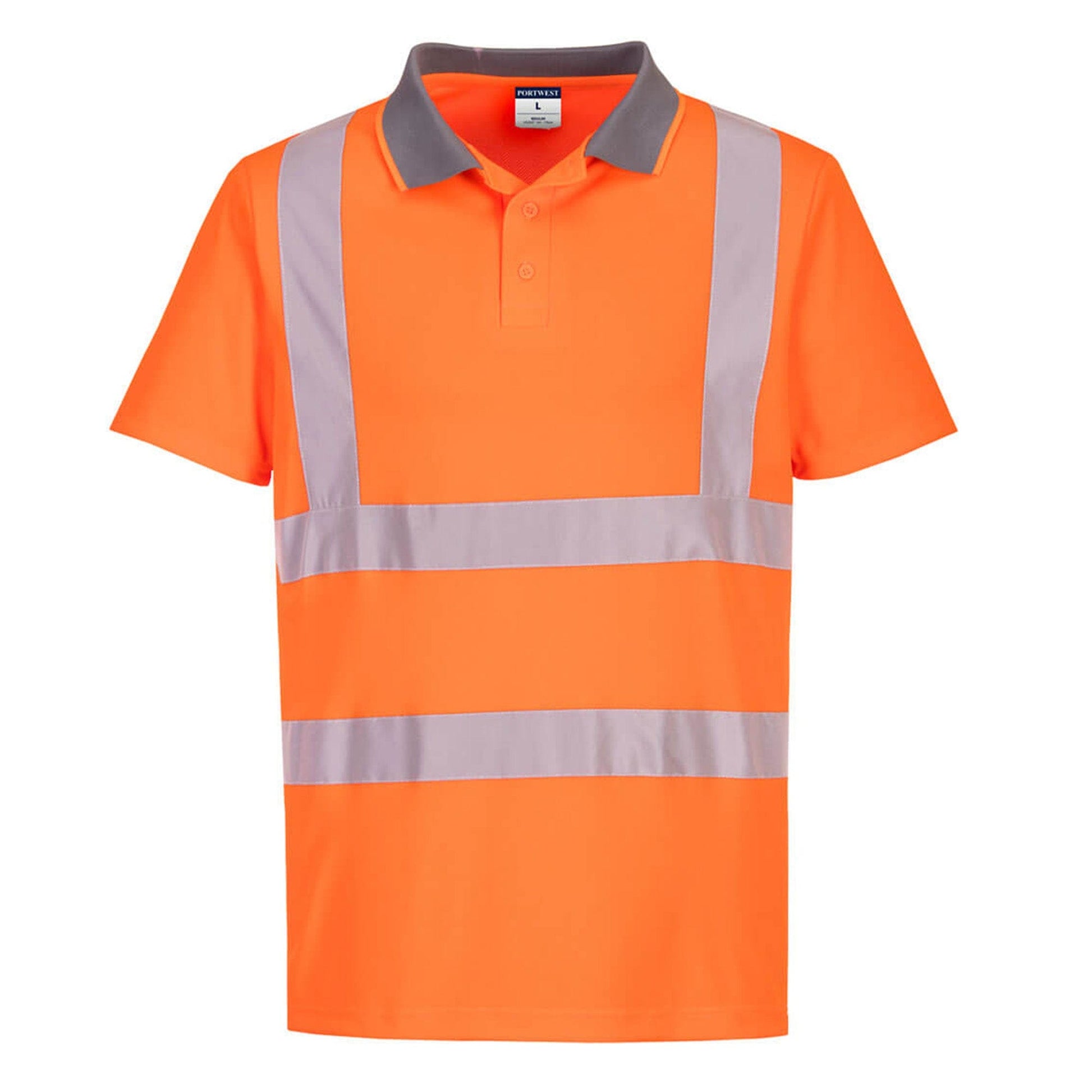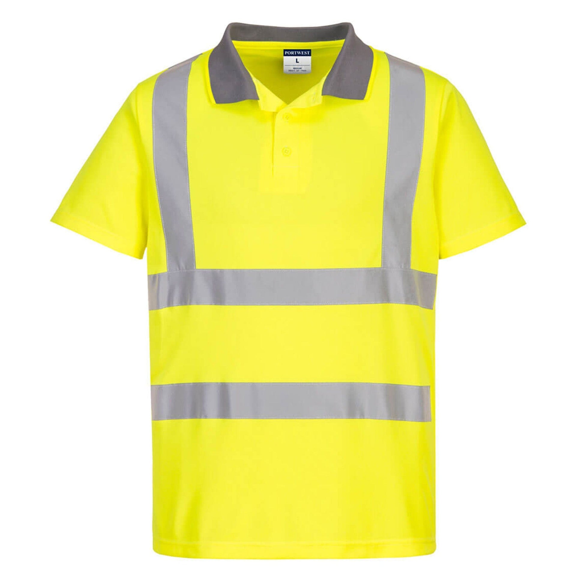 Portwest Eco Hi Vis Short Sleeve Polo Shirts - keep cool and comfortable in recycled fabric.