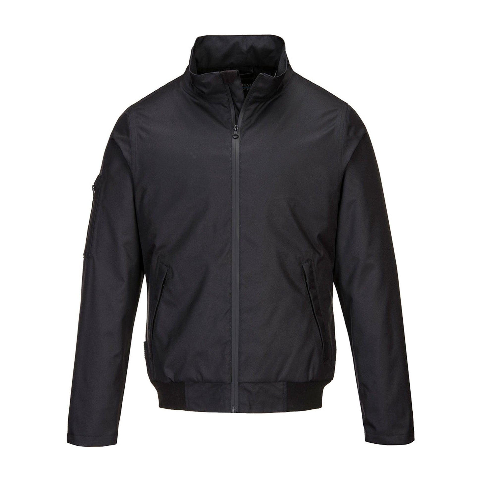 Water beads away from the Portwest KX3 Black Bomber Jacket KX361 thanks to the extremely water-resistant eco-conscious fabric finish.