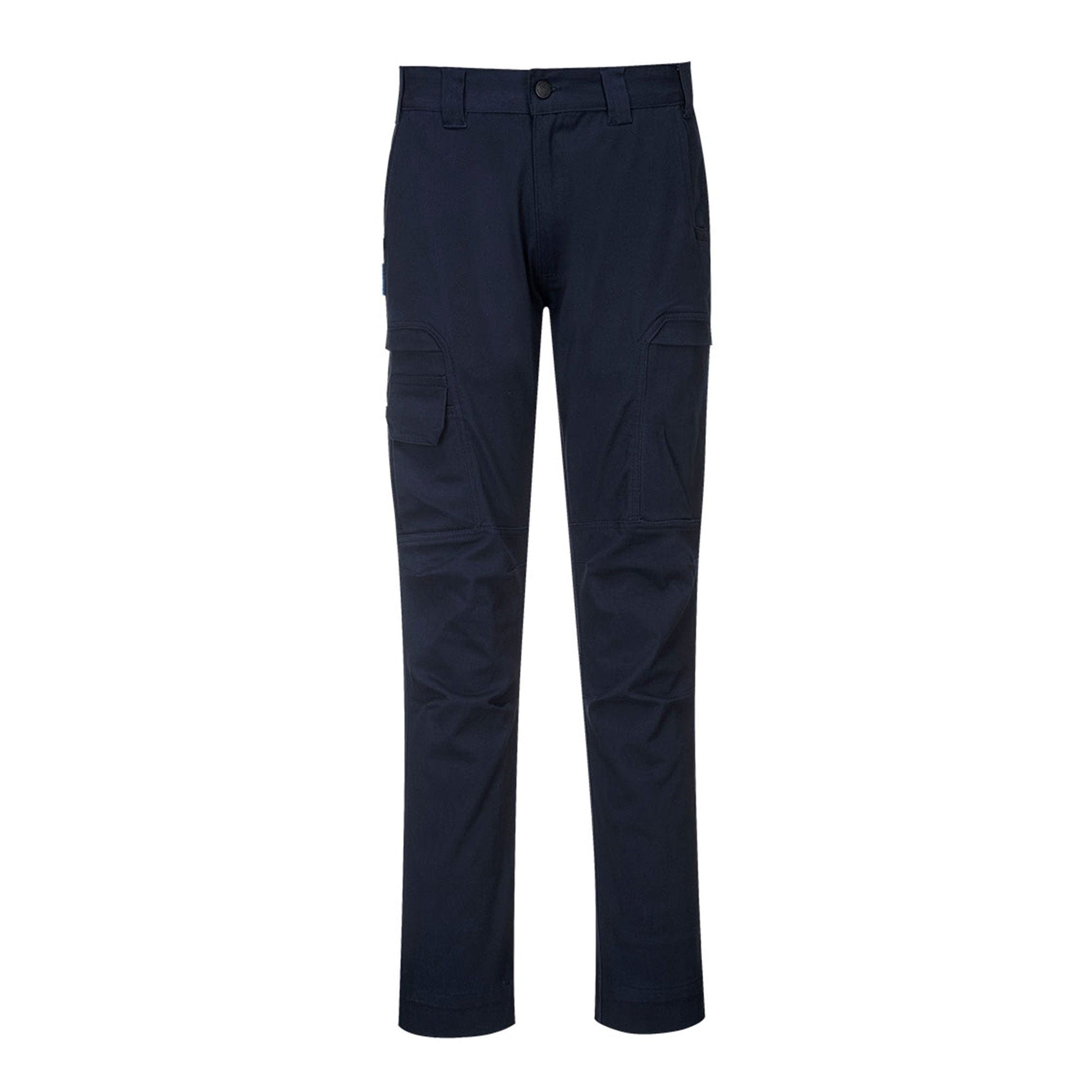The fabric of Portwest KX3 Cargo Trousers T801 combines cotton with elastane, providing a comfortable and flexible stretch.
