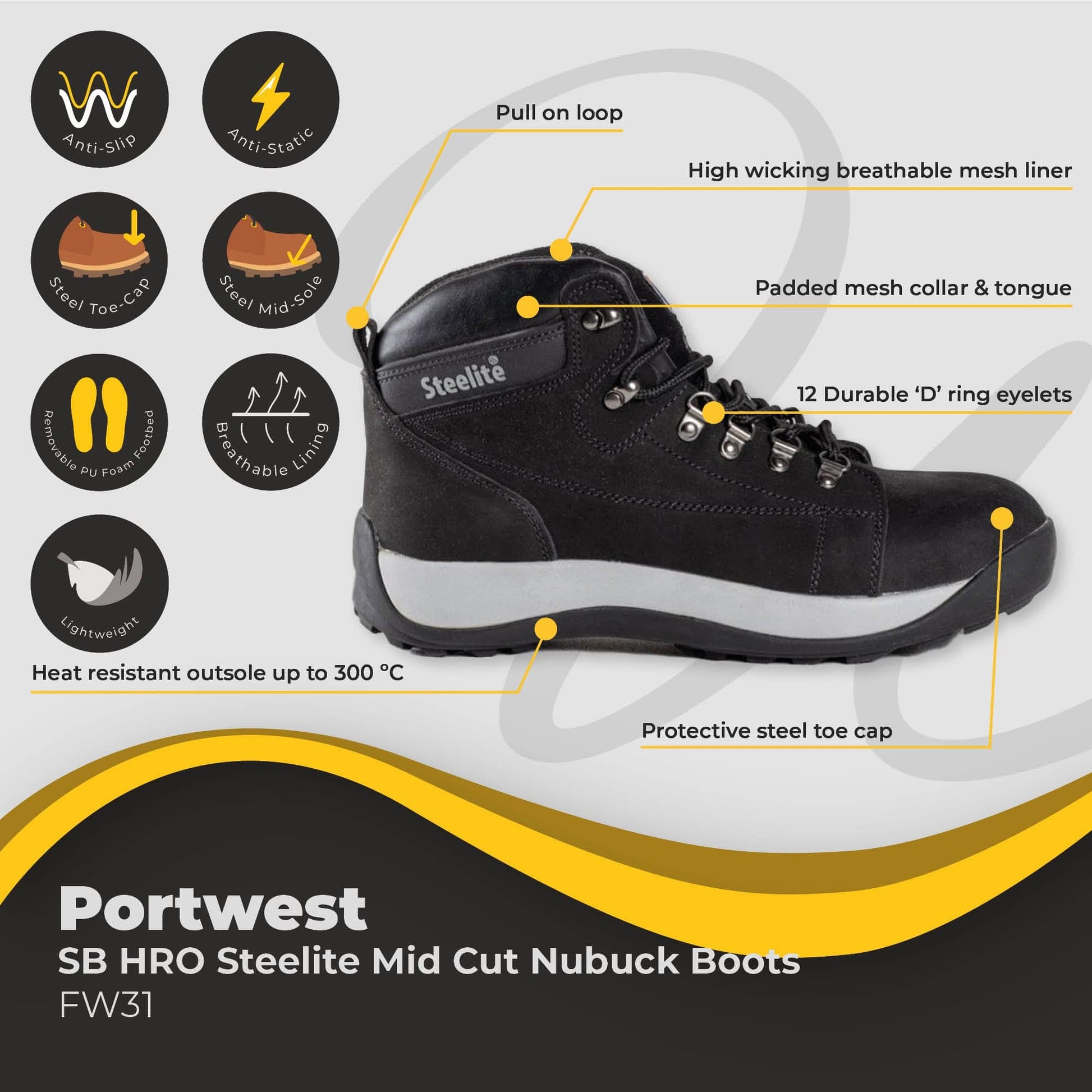 Portwest Steelite Mid Cut Nubuck Boot SB HRO FW31 is a carefully crafted midcut safety shoe