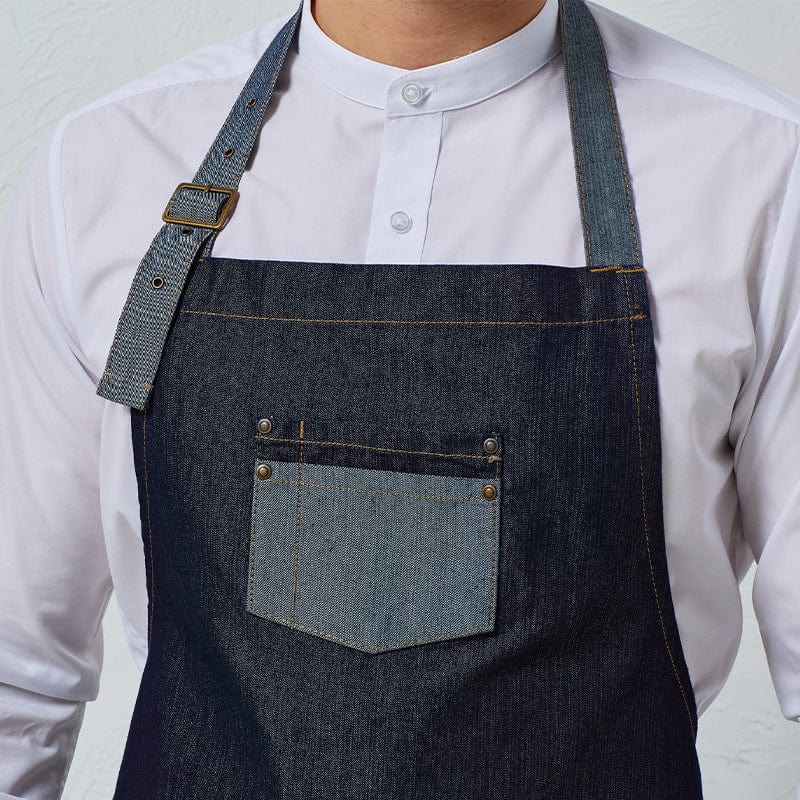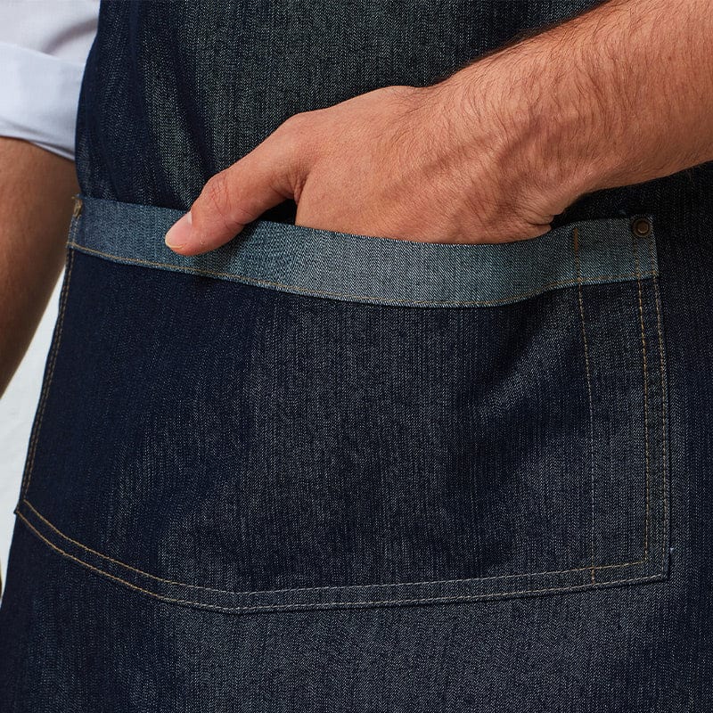 This denim bib apron is a modern solution for bars and restaurants who are looking for something a little bit different from their staff uniform. This full bib style offers hygienic coverage against spillages.