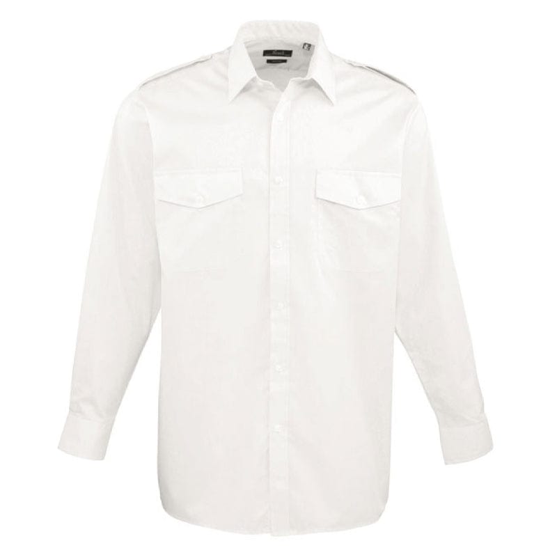 This men's long sleeve Pilot shirt is ideal as it features tabs on the shoulders that can accommodate epaulettes.