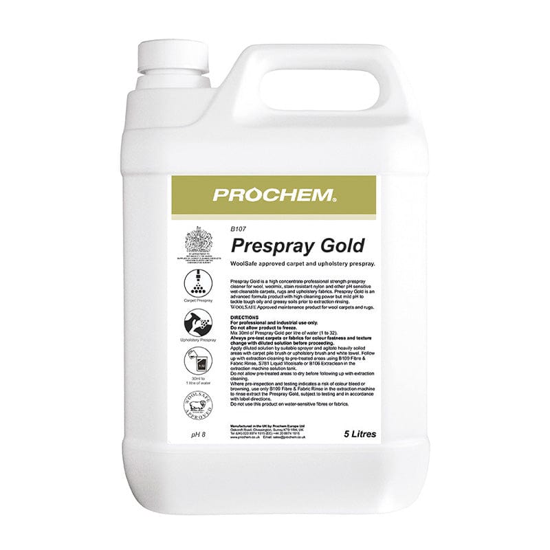 A high concentrate professional strength pre-spray cleaner for wool, wool mix, stain resistant nylon and other pH sensitive, wet-cleanable carpets, rugs and upholstery fabrics.