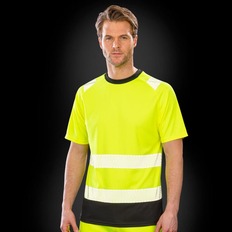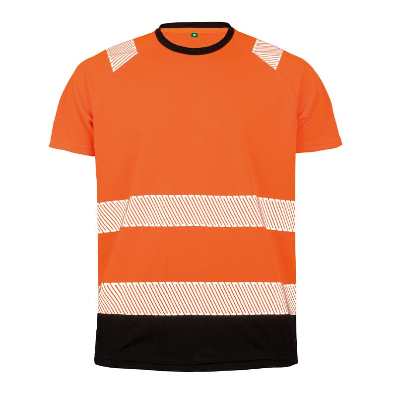 An environmentally conscious mens Hi Vis T-Shirt made from the highest quality yarns using 100% Recycled Polyester.