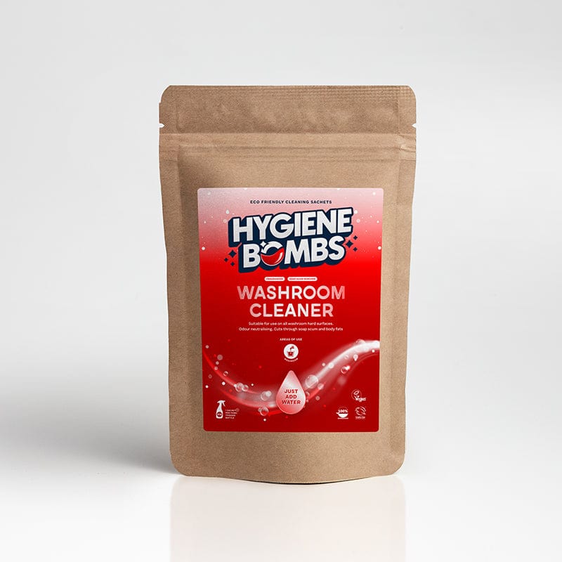 With the optimal dilution ratio of 1 sachet for a 750ml trigger spray bottle, it cleans and removes body fat, soap scum and general soiling with ease. Plus, it prevents build up of limescale, making it safe to use on stainless steel. Tested to pass EN13697, it will kill the majority of harmful bacteria. The products are fragranced and will leave a washroom smelling inviting, all while drying quickly to leave surfaces uncontaminated, bright, and smear free. Hygiene Bombs are vegan-friendly, sustainable, cruelty-free and 100% biodegradable.