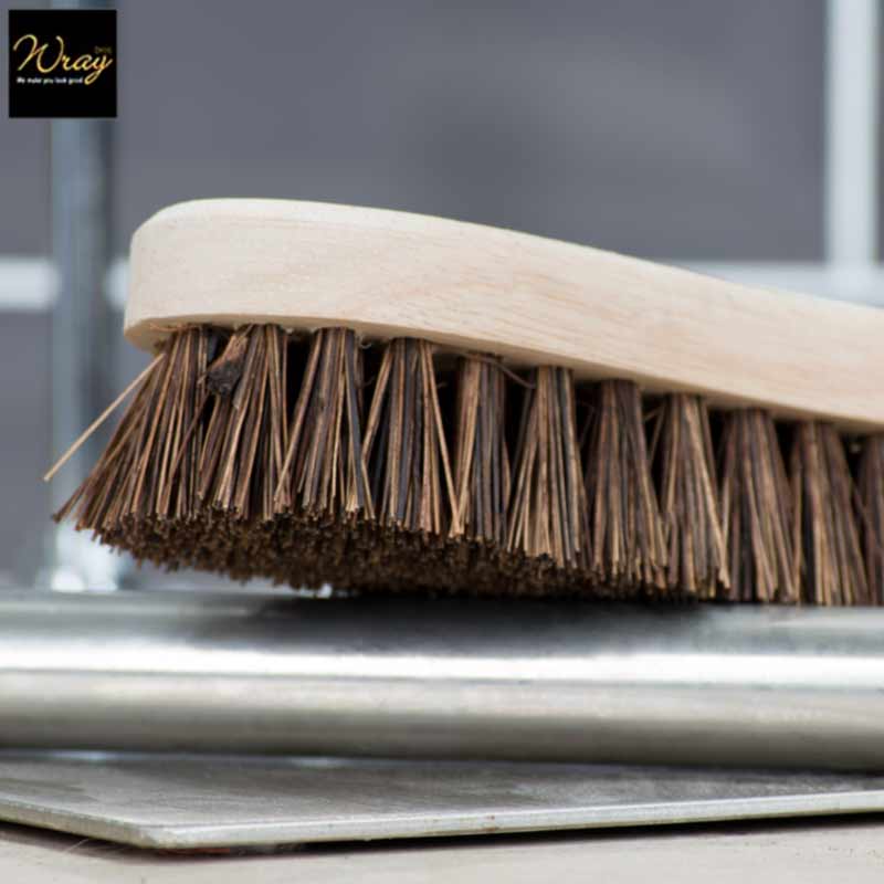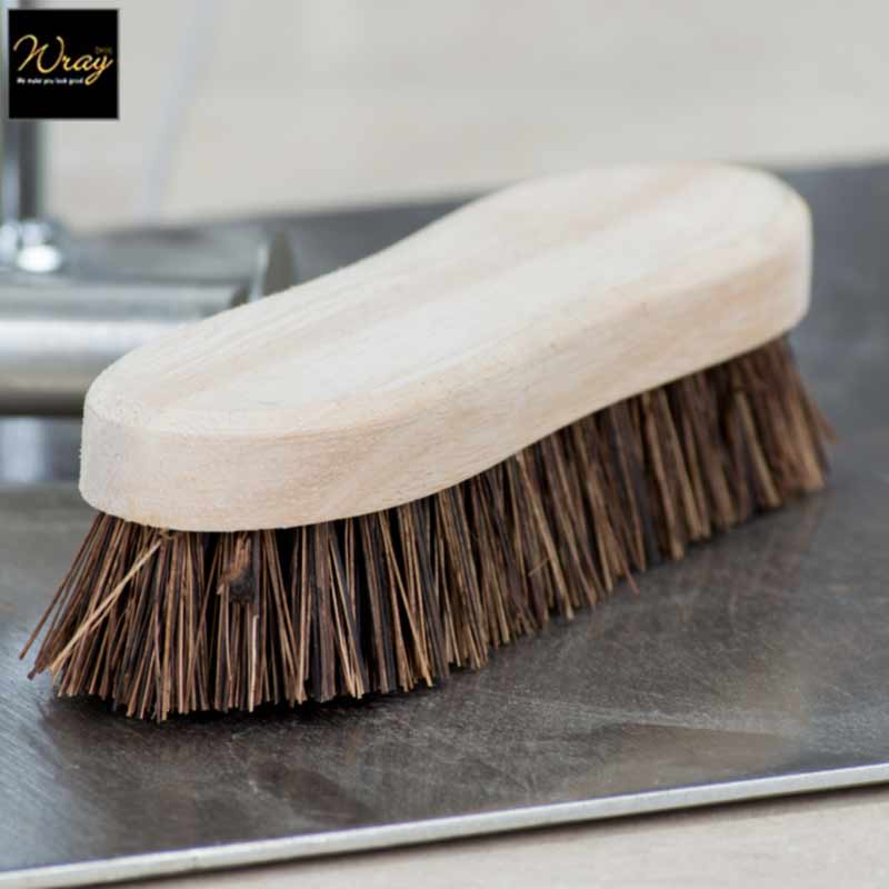 Wooden hand scrub brush is an 8 inch brush filled with natural bassine. Part of the quality wooden brush and broom range from Hillbrush