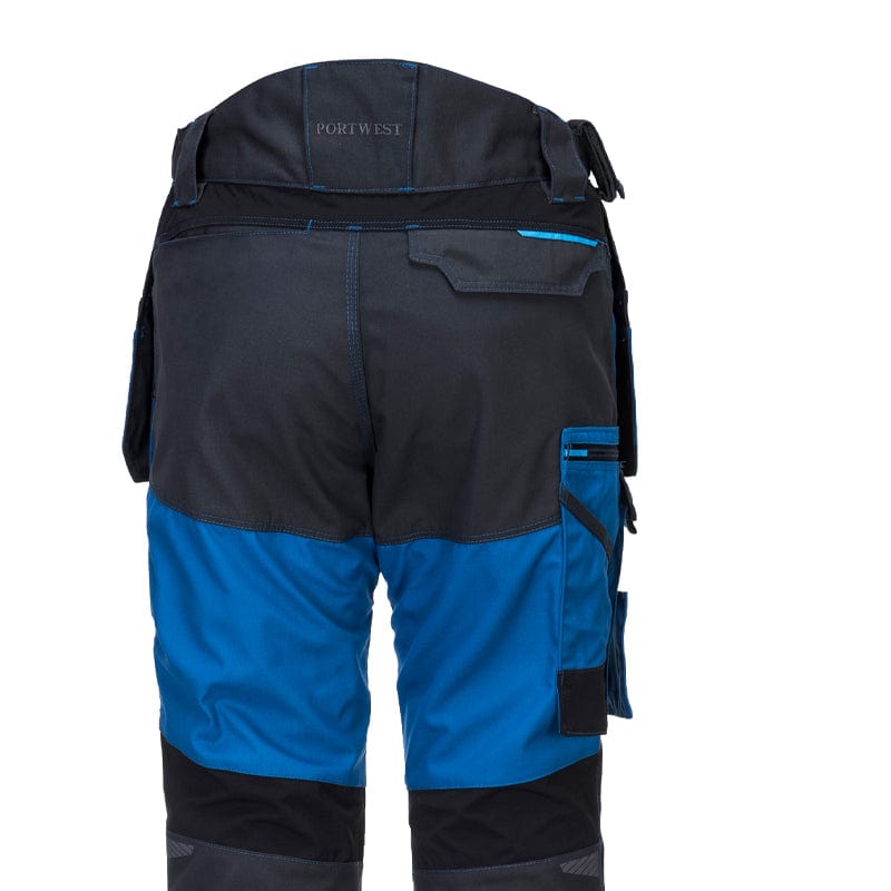Portwest WX3 Holster Trousers offer a contemporary, slim fit leg option featuring clever holster pockets for ample storage and security.